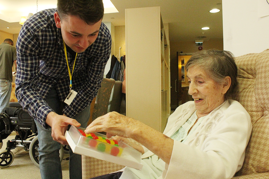 These jellies are made of 90% water with electrolytes to aid in hydration. Once he was familiar with what dementia patients need, he brainstormed what they want. Just the sound of water running can cause fear.
